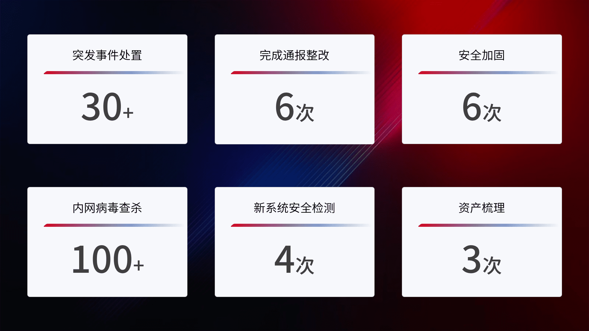 网络安全加固与风险管理:通过技术加固手段,,如加强区域隔离,,,缩减攻击内网横向移动的范围;优化现有网络安全管理制度,,,,降低网络威胁暴露面,,减少被黑客攻击的可能性。。